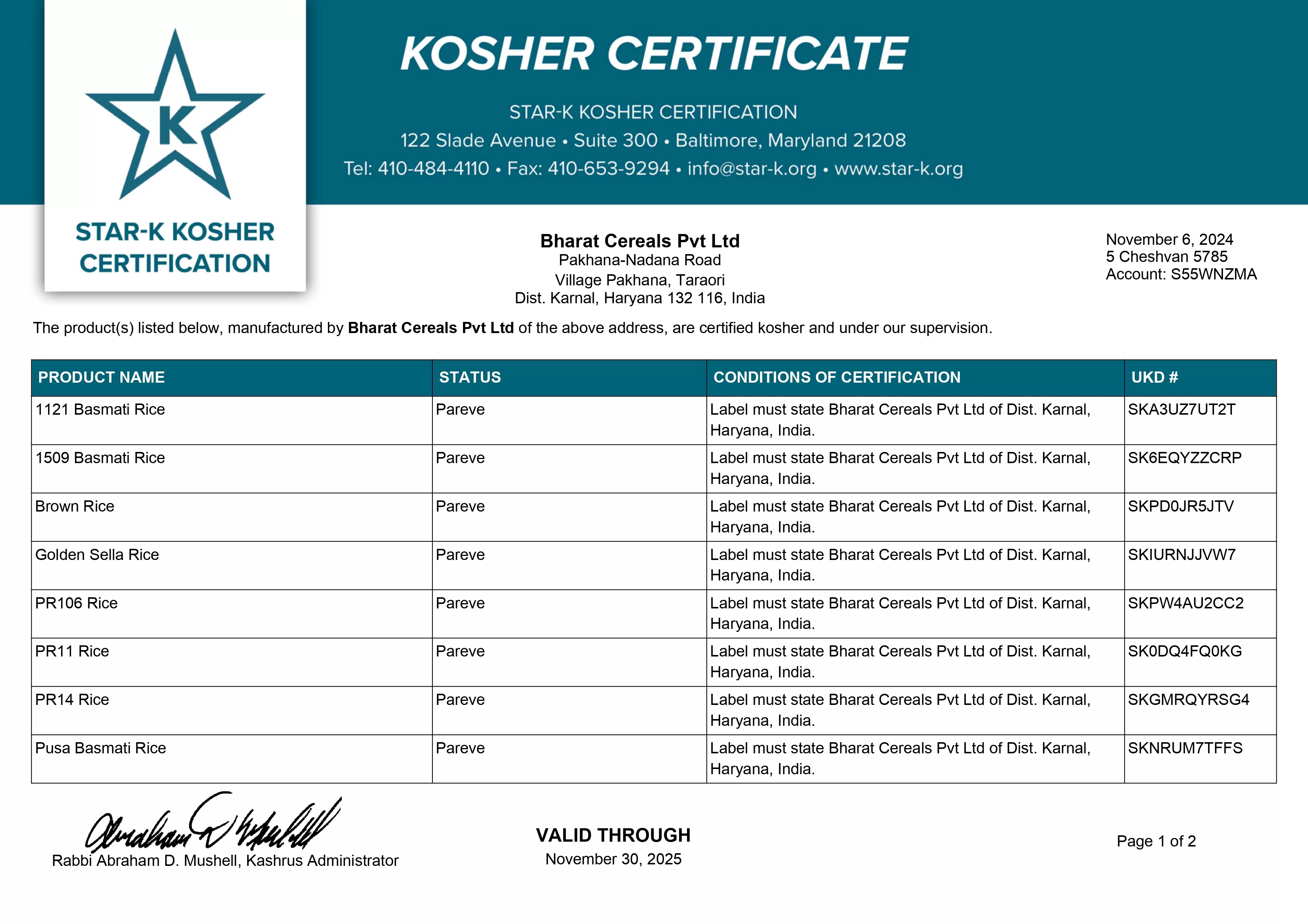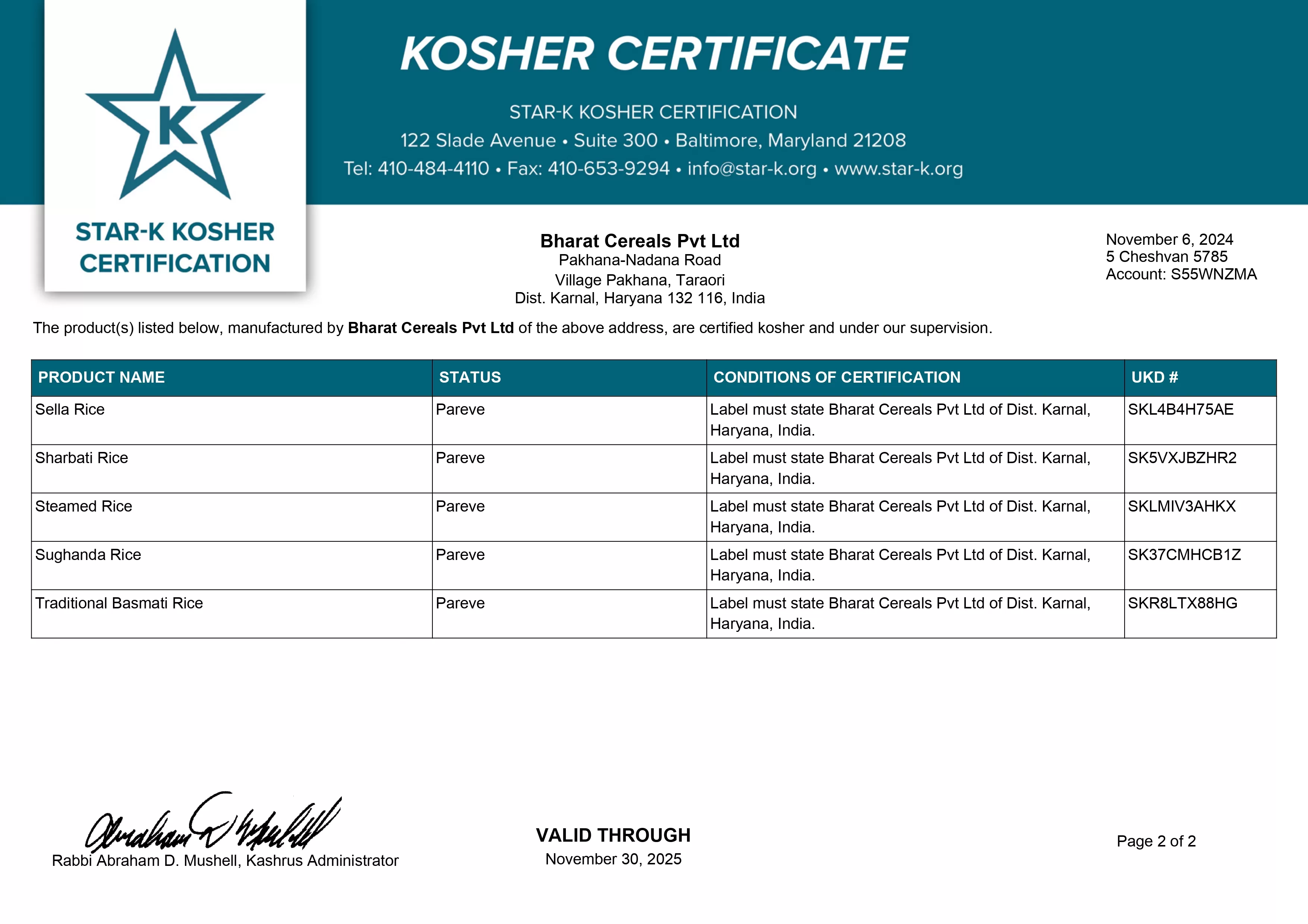 KOSHER CERTIFICATE