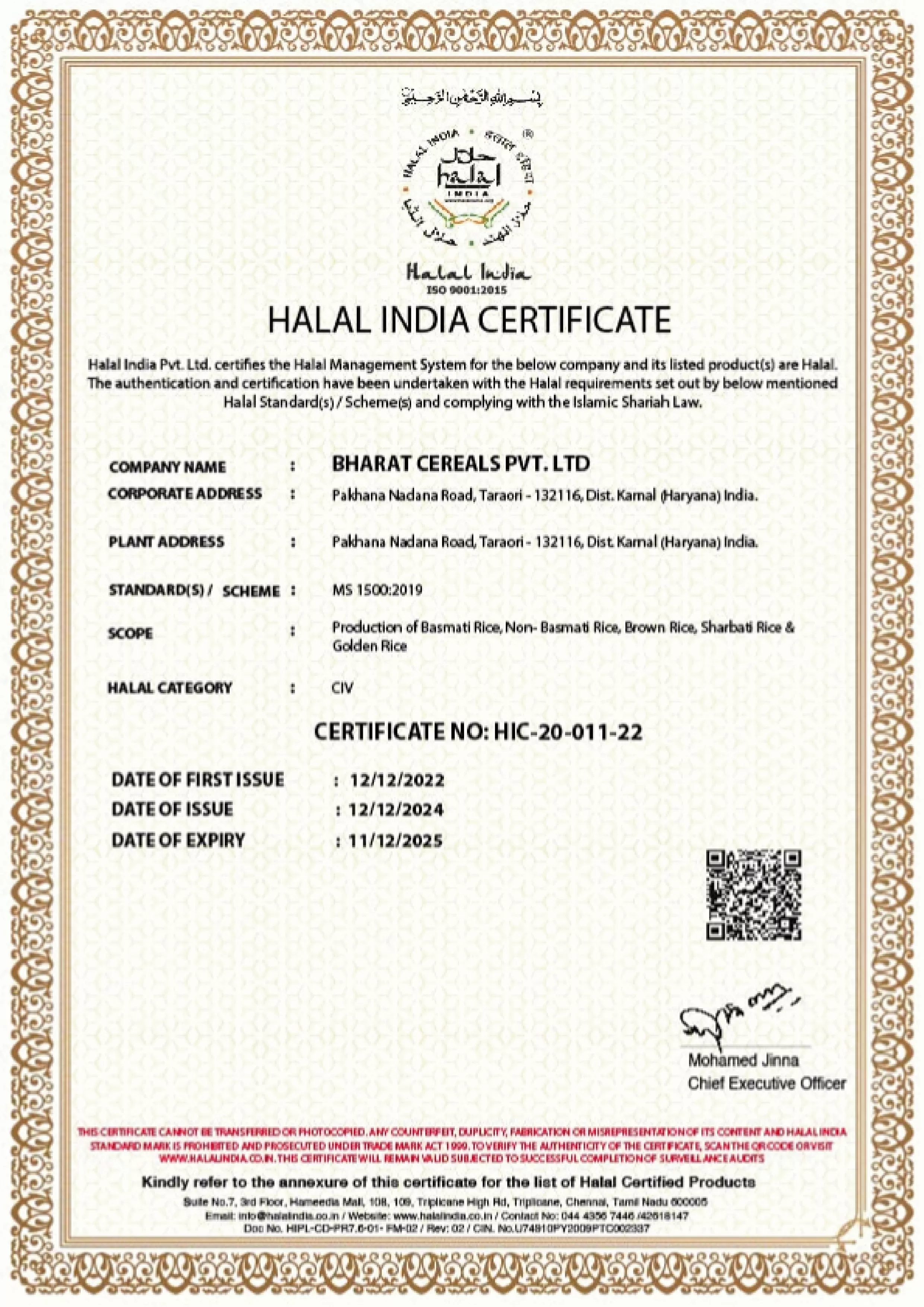 HALAL INDIA CERTIFICATE