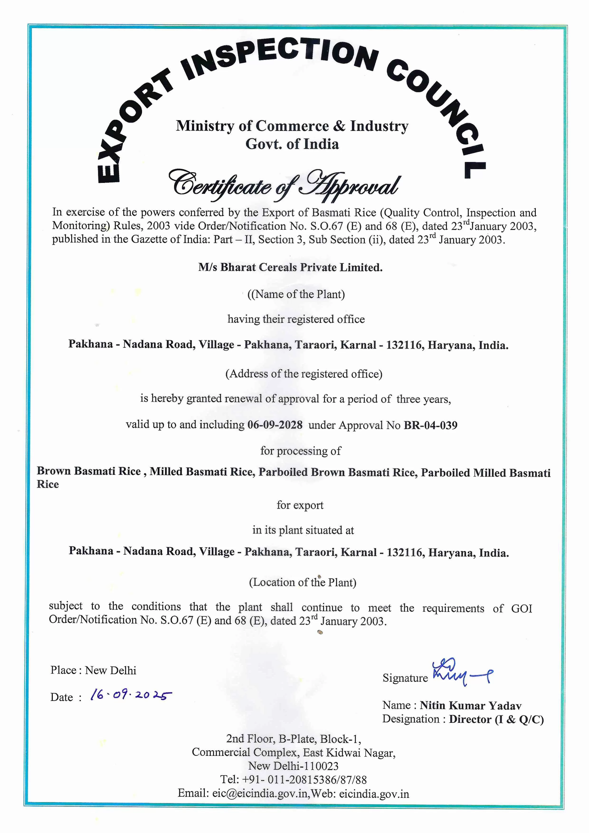 EXPORT INSPECTION COUNSIL CERTIFICATE