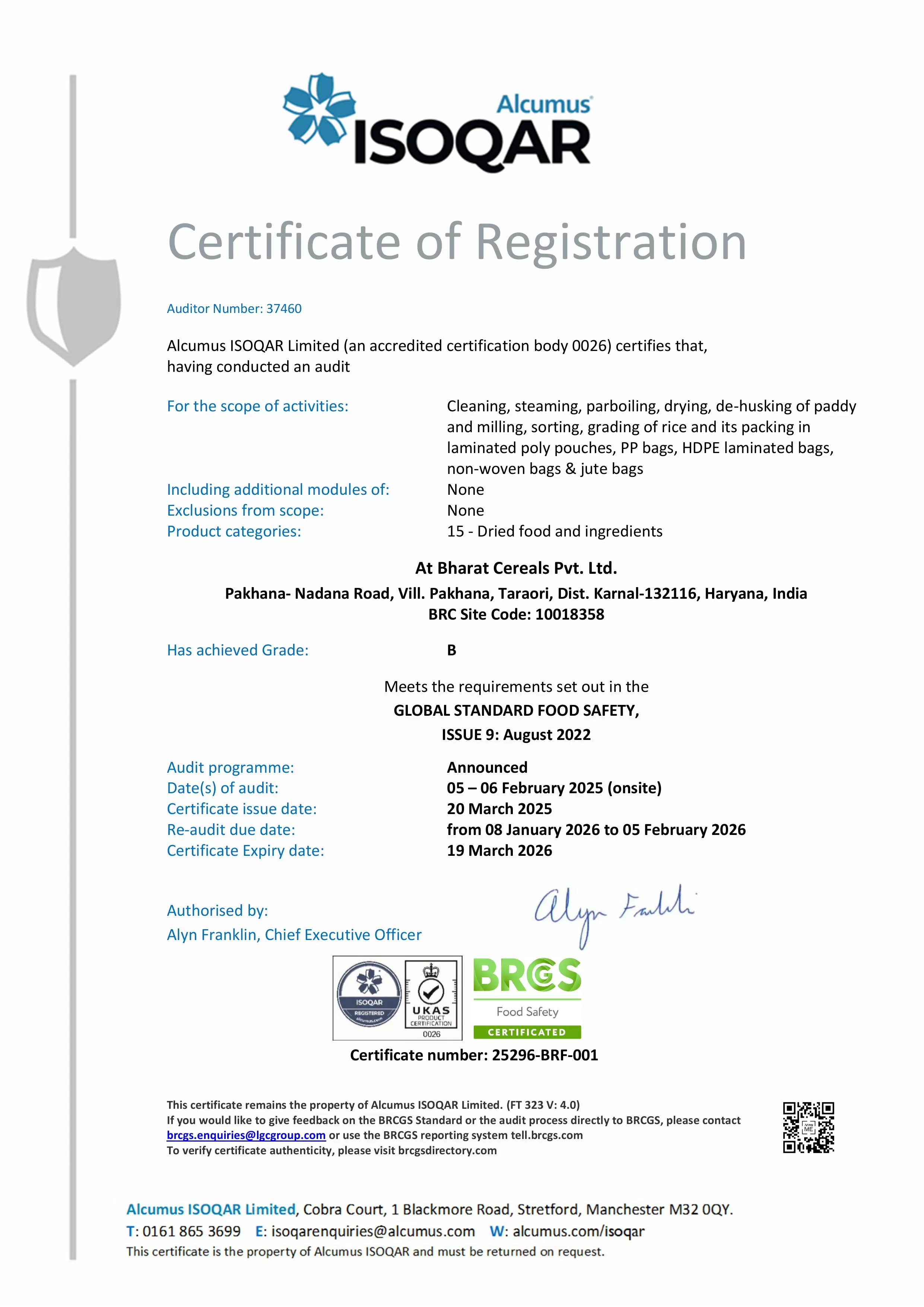 BRCS CERTIFICATE
