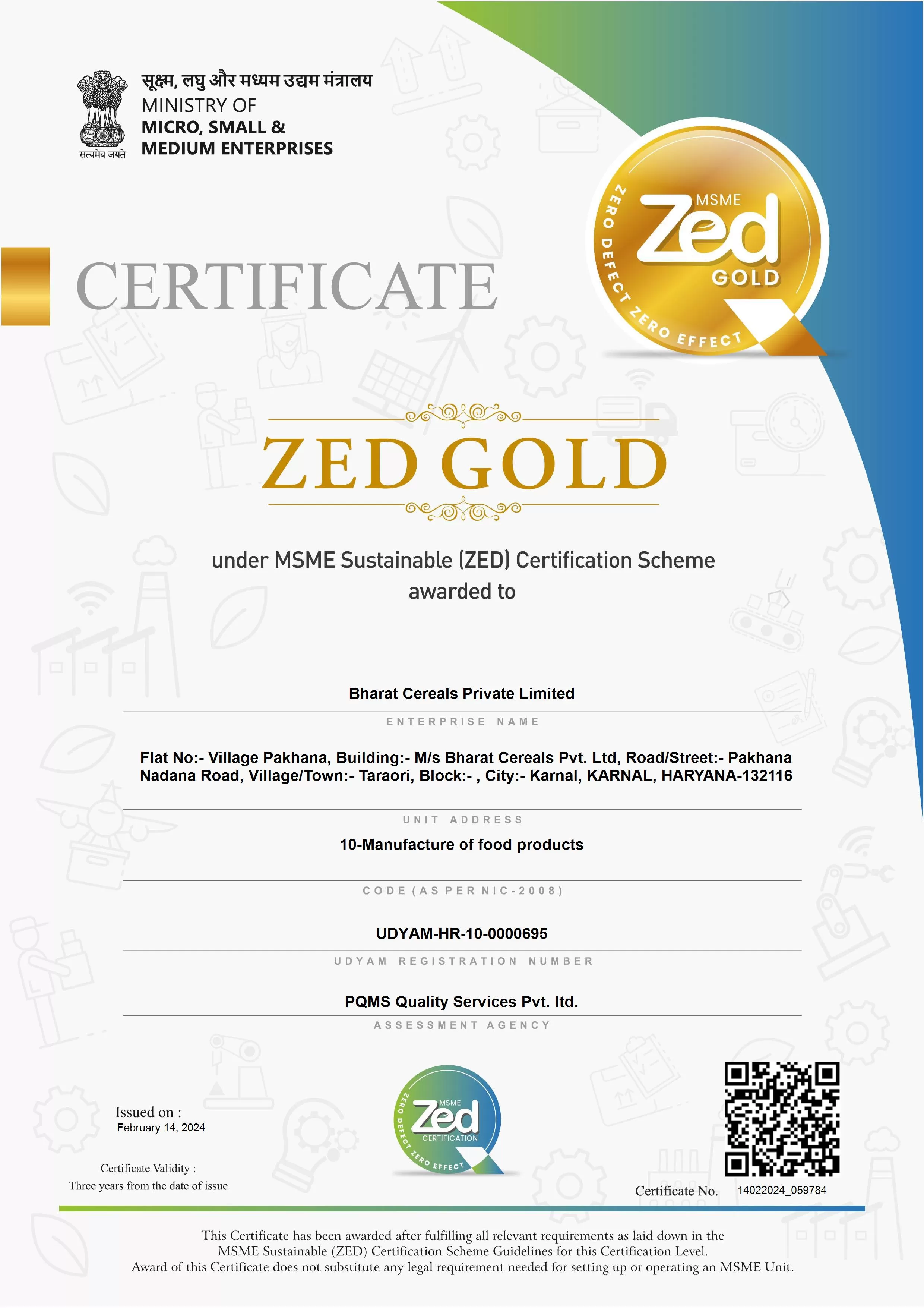 ZED GOLD CERTIFICATE